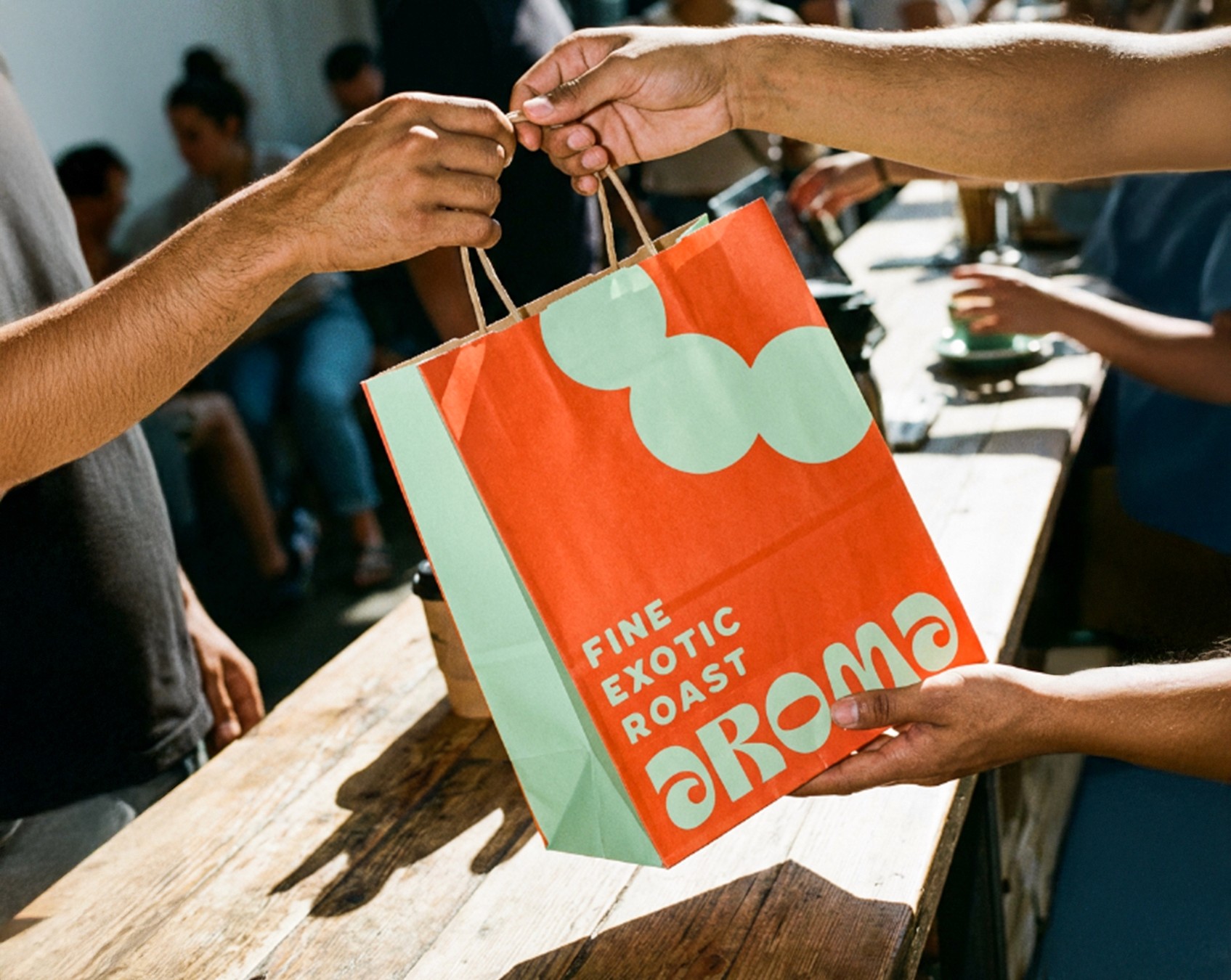 Aroma is a premium coffee identity built around bold simplicity and sensory impact. The visual system leverages a high-contrast palette vibrant red paired with a soft mint to create instant shelf recognition and a warm, modern personality. Custom, rounded letterforms and modular circular motifs were developed in Adobe Illustrator, then refined and prepared across touchpoints using Photoshop for production ready artwork. The system scales consistently from packaging and signage to apparel and carry solutions, ensuring cohesive brand presence in retail and café environments.