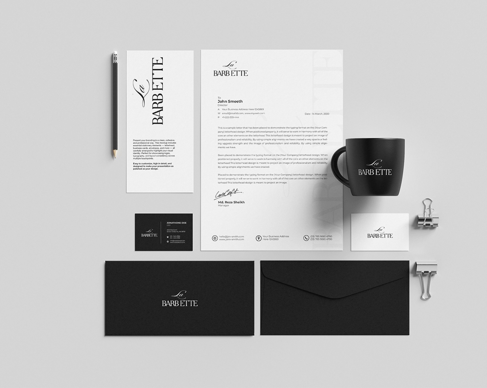 For La Barbette, the goal was to build a timeless, luxury fashion identity that feels elegant, premium, and instantly recognizable. I focused on a minimal black-and-white palette, refined typography, and a clean logo system to communicate grace and confidence while keeping everything consistent across digital and print touchpoints.